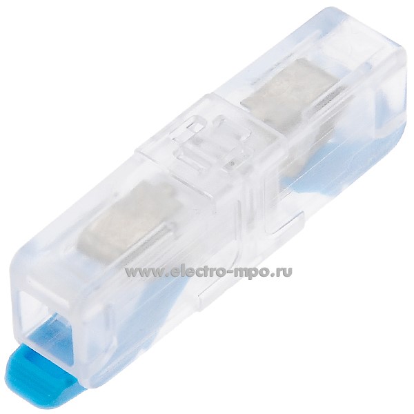 К4392. Зажим VSE-H61WB безвинтовой 1 пара х(0,5-6,0) кв.мм. проходной прозрачный-синий (Электромонтаж)
