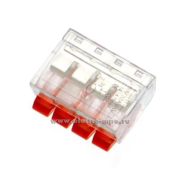 Зажим 18-214 безвинтовой 4х(0,14-4,0) кв.мм оранжевые клавиши (Электромонтаж)