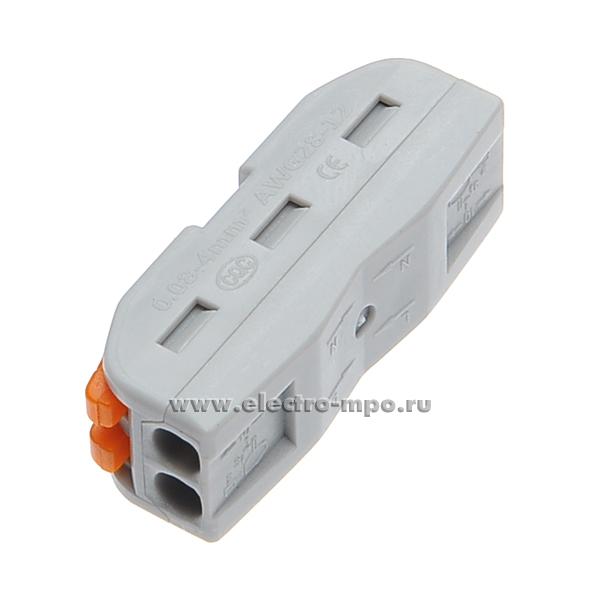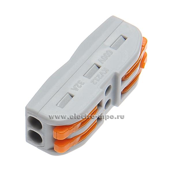 К4321. Зажим YS-212 безвинтовой 2 пары х(0,08-4,0)кв.мм проходной серый (Электромонтаж)