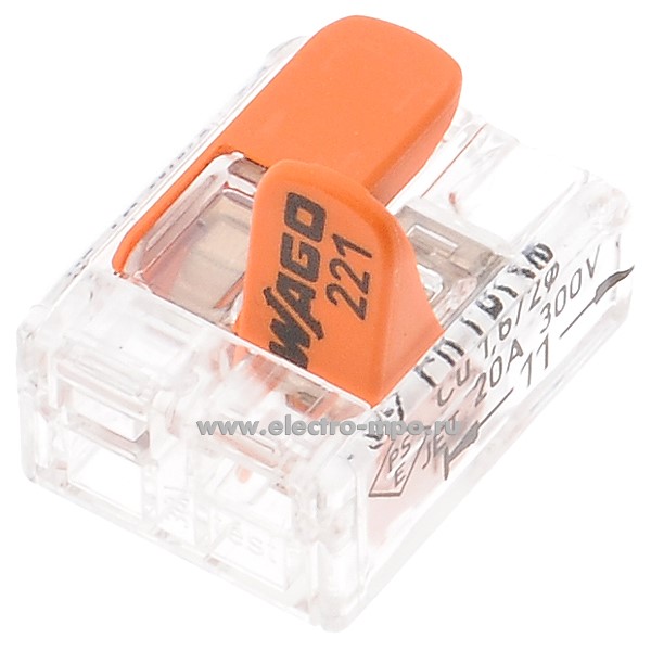 К4632. Зажим 221-412 безвинтовой 2х(0,14-4,0) кв.мм для медного провода (Wago)