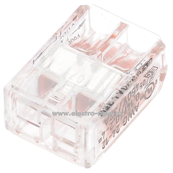 К4303. Зажим VSE-412W безвинтовой 2х(0,08-4,0) кв.мм прозрачный (Электромонтаж)