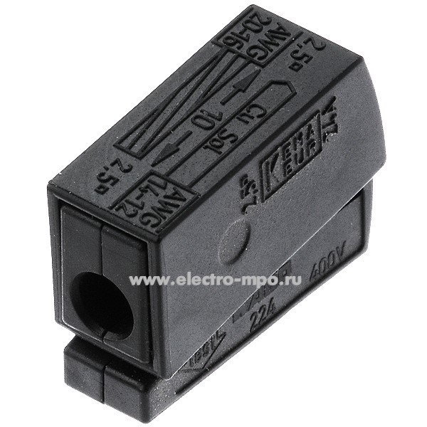 К4639. Зажим 224-104 безвинтовой 1х(1,0-2,5)/1х(0,5-2,5) кв.мм для меди (Wago)