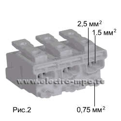 Зажим 294-4003 безвинтовой 3х((0,5-1,5)+(0,5-2,5))/3х2х(0,5-2,5) кв.мм для меди (Wago)