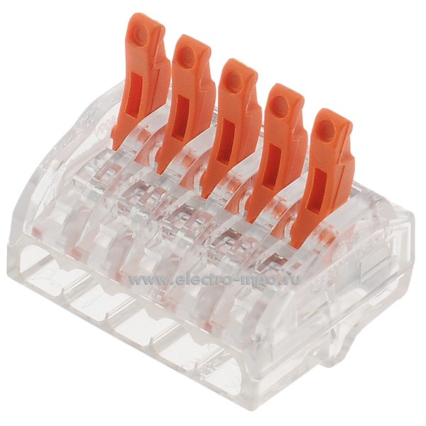К4626. Зажим 222-415 безвинтовой 5х(0,08-4,0) кв.мм для медного провода (Wago)