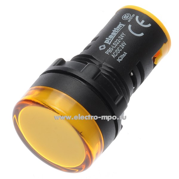 А5102. Светосигнальная арматура PB0-LS22-24Y желтый 24В AC/DC со светодиодом IP65 (Plastim)