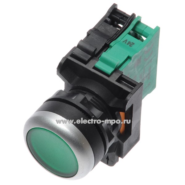А5118. Выключатель кнопочный PB0-AW33B5 зеленый 1з без фиксации, с подсветкой 24В AC/DC IP65 (Plastim)