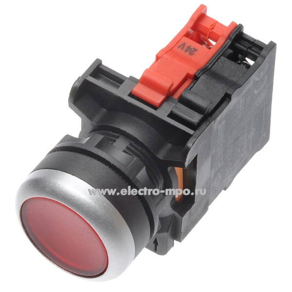 А5119. Выключатель кнопочный PB0-AW34B5 красный 1р без фиксации, с подсветкой 24В AC/DC IP65 (Plastim)