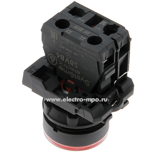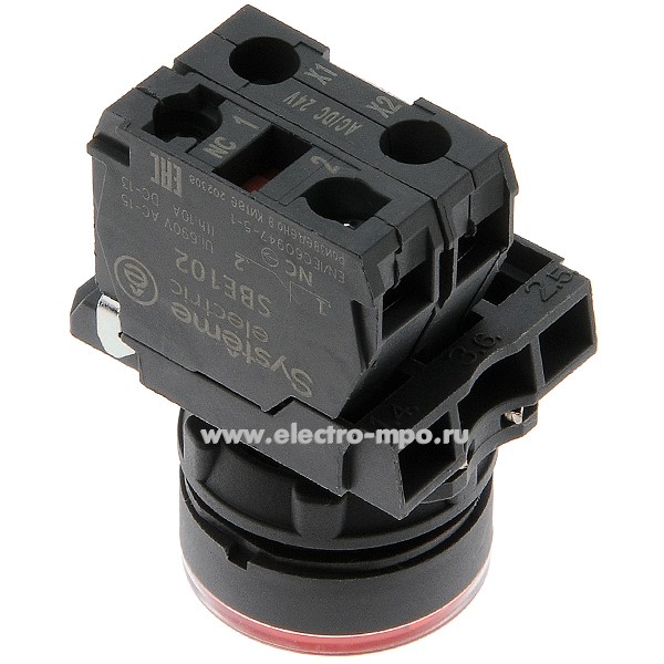 А5353. Выключатель кнопочный SB5AW34B2 красный 1р без фиксации c подсветкой 24В DC (Systeme Electric)