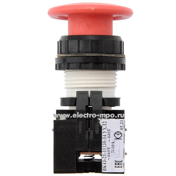 Выключатель кнопочный ВК43-21-11130 "Гриб" красный 10А 1з+1р без фиксации (КЗЭ Кашин)