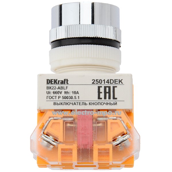 Выключатель кнопочный ВК22-ABLF-RED 25014DEK красный 10А 1з+1р без фиксации (DEKraft)