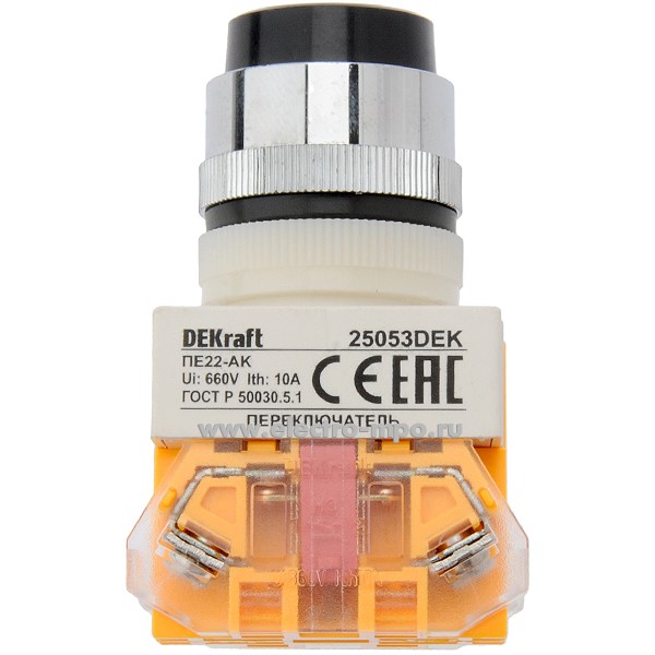Выключатель поворотный ПЕ22-AKS-2-BLK 25053DEK с ключом 1з+1р 2 положения с фикс. (DEKraft)