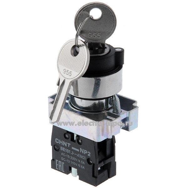 Выключатель поворотный 573767/573987 NP2-BG41 2 положения 1з c возвратом, с ключом (CHINT)