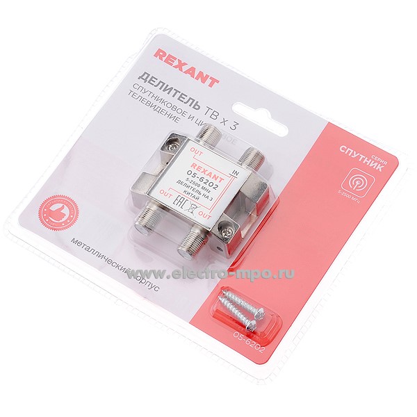 Делитель 05-6202 TV сигнала 1 вход 3 выхода под F-штекер 2500МГц (Rexant Китай)
