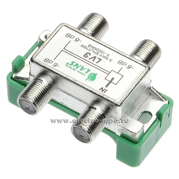 Разветвитель Lans LV3 TV сигнала 1 вход 3 выхода под F-штекер 1000МГц (Lans Китай)