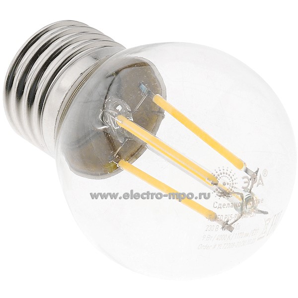 Л0019. Лампа 9Вт Б0047029 F-LED P45-9W-840-E27 1170Лм 4000К светодиодная "шарик" х/б свет (ЭРА)