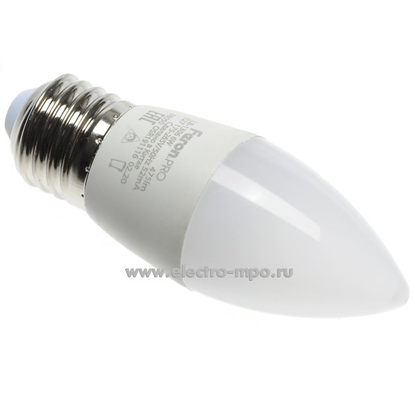 Л0361. Лампа 6Вт 38051 LB-1306 Feron.PRO C37 6W Е27 475Лм 4000К светодиодная "свеча" х/б свет (Feron)