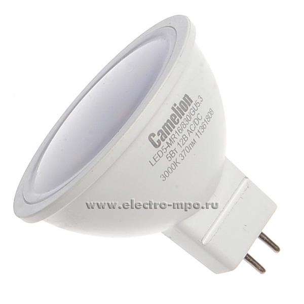 Л0754. Лампа 5Вт LED5-MR16/830/GU5.3 12В 3000К светодиодная тёплый белый свет (Camelion)