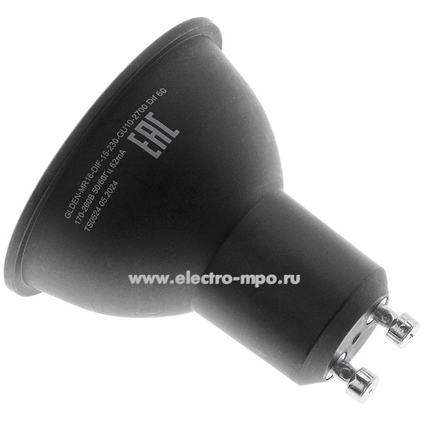 Л0937.Лампа 15Вт 662108 GLDEN-MR16-DIF-15-230-GU10-2700 черная 850Лм светод. "диффузор" т/б cвет (General