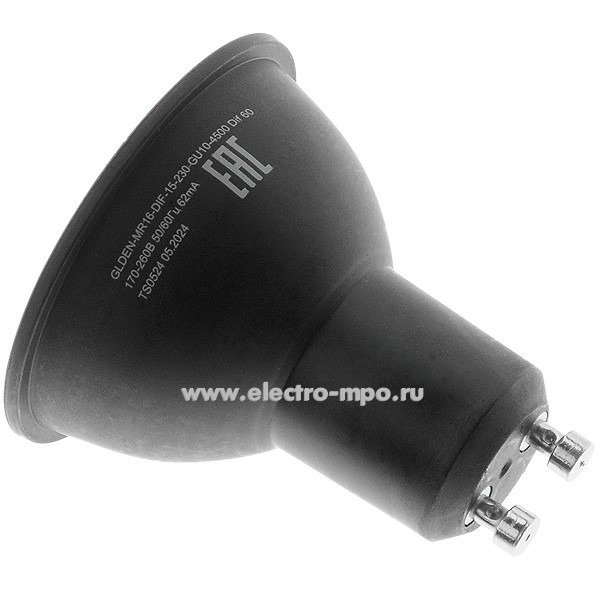 Л0938.Лампа 15Вт 662107 GLDEN-MR16-DIF-15-230-GU10-4500 черная 870Лм светод. "диффузор" х/б cвет (Gener