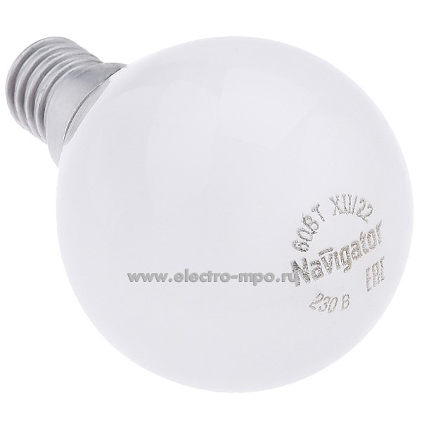 Лампа 60Вт 94317 ЛОН NI-C-60-230-E14-FR накаливания "шарик" матовая (Navigator)