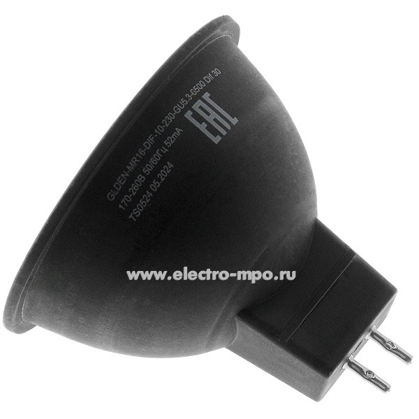 Лампа 10Вт 662112 GLDEN-MR16-DIF-10-230-GU5.3-6500 черная 650Лм "диффузор" светод. дневной свет (G