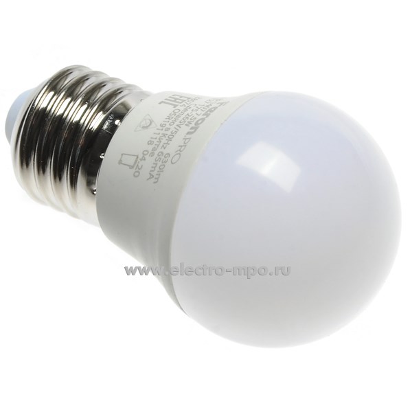 Л1637. Лампа 7.5Вт 38074 LB-1407 Feron.PRO G45 7.5W Е27 630Лм 2700К светодиодная "шарик" т/б свет (Feron)