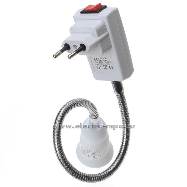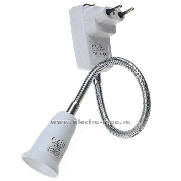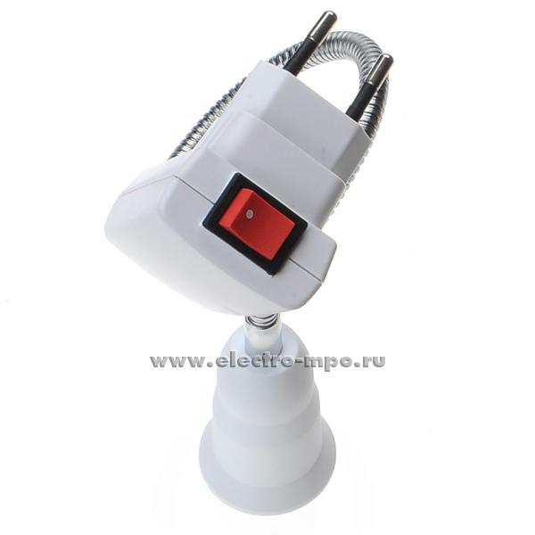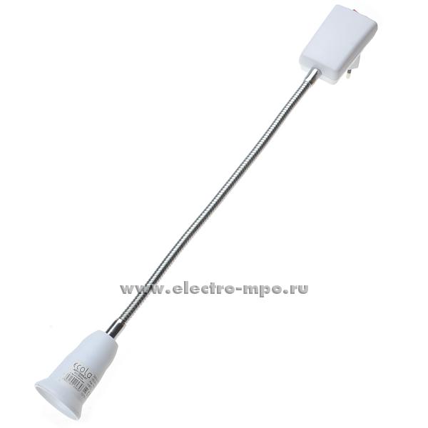 Патрон-переходник APF7SWEAY вилка с выключ. - патрон E27 с гибкой трубкой 30см. белый (Ecola Китай)