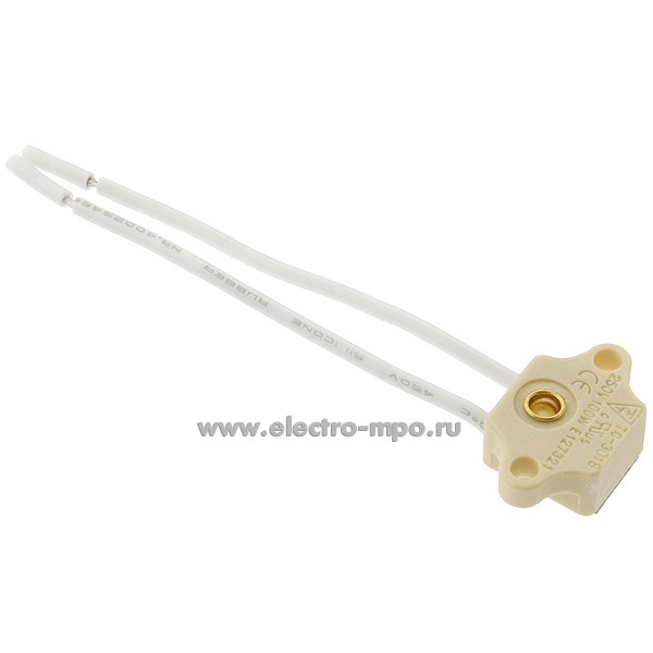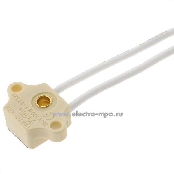 Р1139. Патрон G4 AC04LWEAY для ГЛН и LED ламп, прямоуг. с ушками, боковой ввод 8см, керамич. (Ecola)