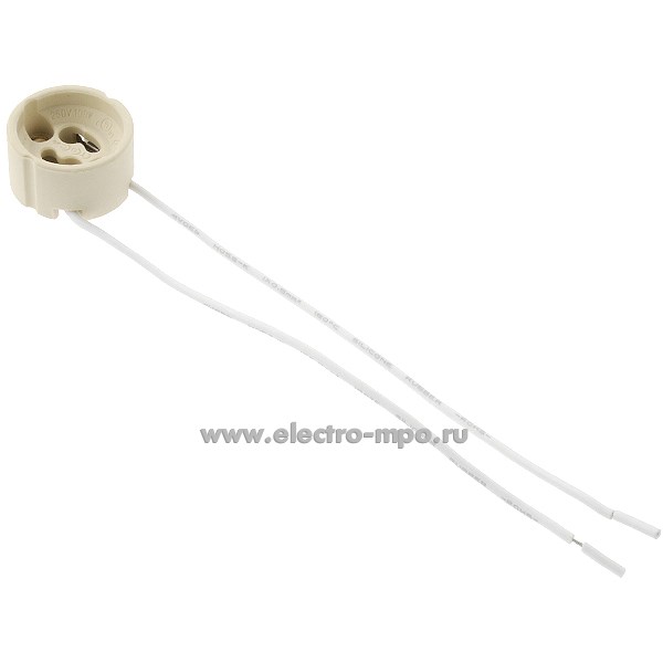 Р1165. Патрон 22312 LH32 GU10 для ГЛН и LED ламп, керамич., вывод боковой, длина провода 15см (Feron)