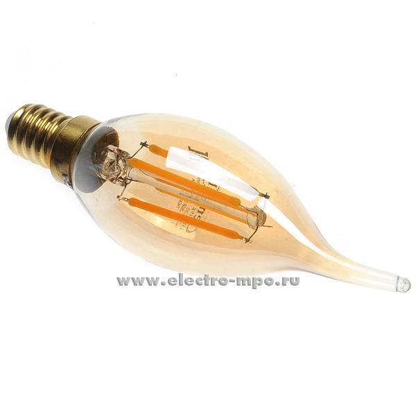 Л1322. Лампа 4Вт Filament золото 647300 GLDEN-CWS-7-230-E14-2700К светодиод "свеча н/ветру" т/б свет (Gene