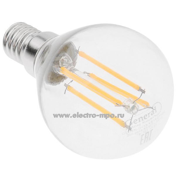 Л1340. Лампа 4,3Вт Filament прозрач. 649977 GLDEN-G45S-8-230-E14-2700К светодиодная "шарик" т/б свет (Gene