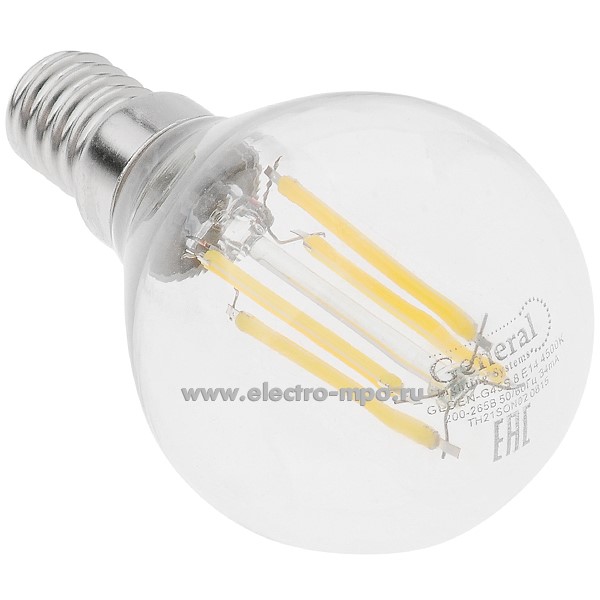 Л1341. Лампа 4,3Вт Filament прозрач. 649978 GLDEN-G45S-8-230-E14-4500К светодиодная "шарик" х/б свет (Gene