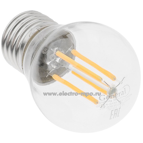 Лампа 4Вт Filament прозрач. 648000 GLDEN-G45S-7-230-E27-2700К светодиодная "шарик" т/б свет (Gene