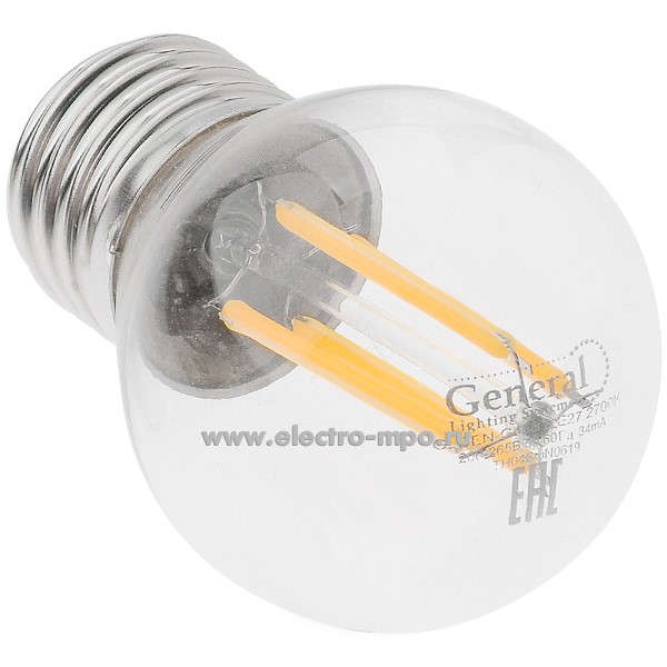 Л1376. Лампа 4,3Вт Filament прозрач. 649980 GLDEN-G45S-8-230-E27-2700К светодиодная "шарик" т/б свет (Gene