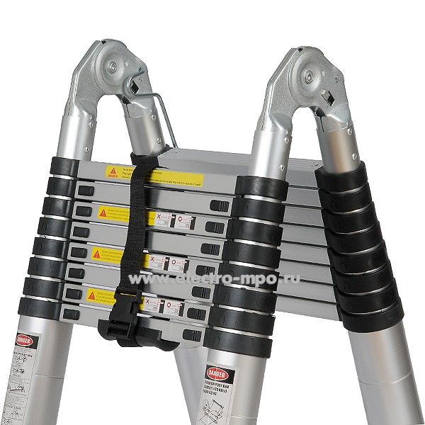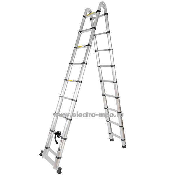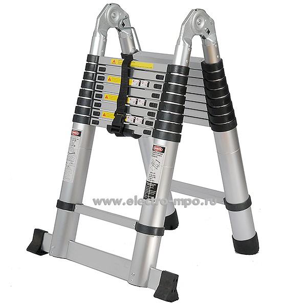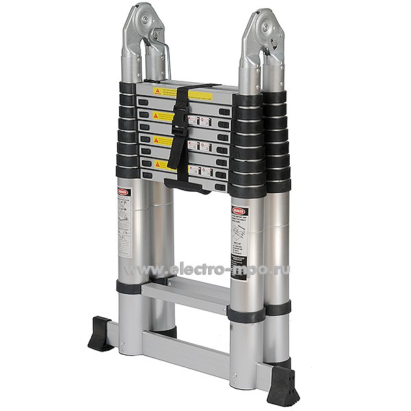 В6017. Лестница JD-3050 телескопическая алюминиевая с шарниром 2 секции (Jiudeng)