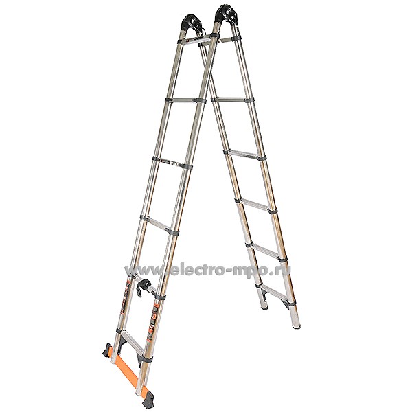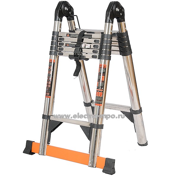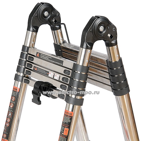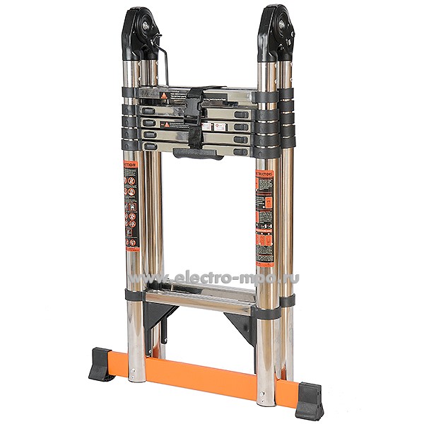 В6082. Лестница JD-SS5050 телескопическая стальная с шарниром 2 секции (Jiudeng)