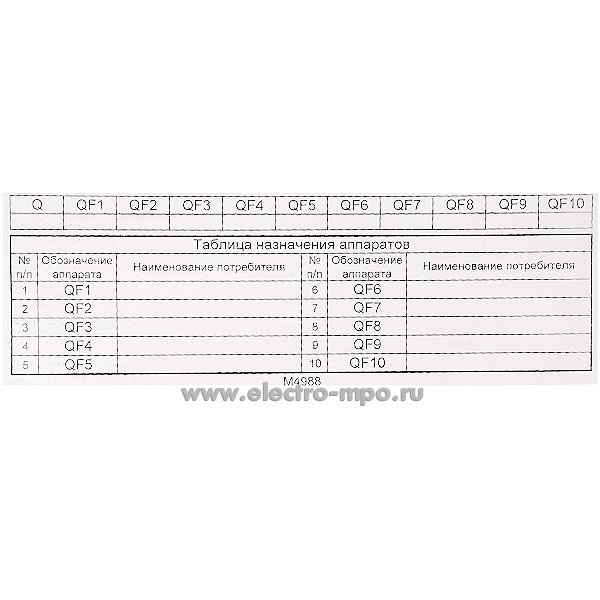 М4988. Комплект наклеек для 10 автоматических выключателей распределительного щитка (МПО Электромонтаж)