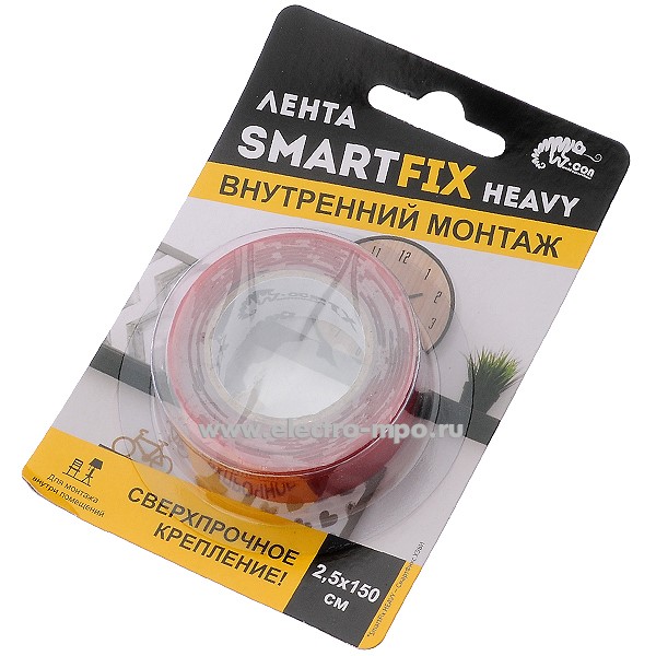 М0806. Лента SFV2515T сверхсильная SmartFix HEAVY двухсторонняя 2,5х150см прозрачная (W-con Китай)