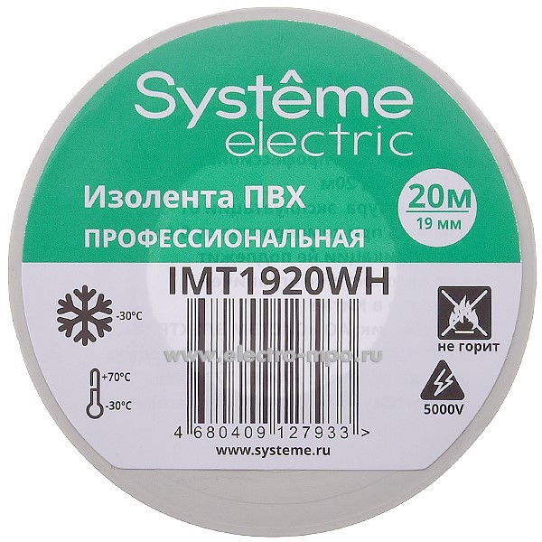 Лента IMT1920WH 19ммХ20м изоляционная белая ПВХ (Systeme Electric)