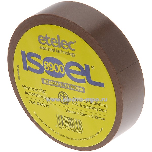 60976. М0976 Лента NA4519 ISOEL 8900 19BW изоляционная коричневая ПВХ 19ммХ25м (ETELEC ITALIA)