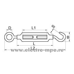 М3268. Талреп 10мм кольцо-крюк DIN 1480/ART 9072 C нержавеющая сталь для троса (Китай)
