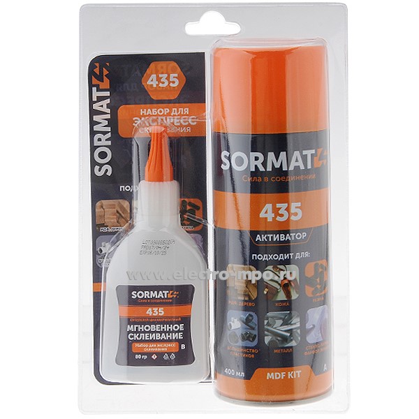 Клей 20480 MDF KIT 435 двухкомпонентный универсальный 80гр + 400мл (Sormat)