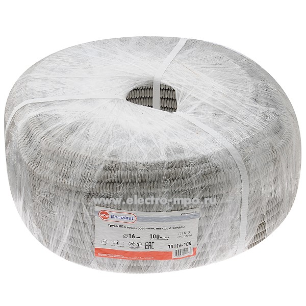 Т0112. Труба 10116-100 гофрированная 16мм ПВХ (Dвнутр. 10,7мм) лёгкая, с зондом, IP55 (Экопласт Россия)