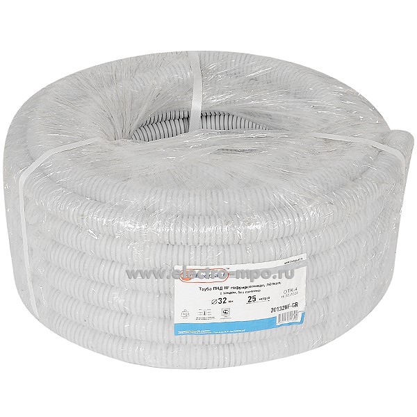 Труба 20132HF-GR гофрированная безгалогенная 32мм ПНД (Dвнутр. 24,3мм) лёгкая, с зондом (Экопласт)