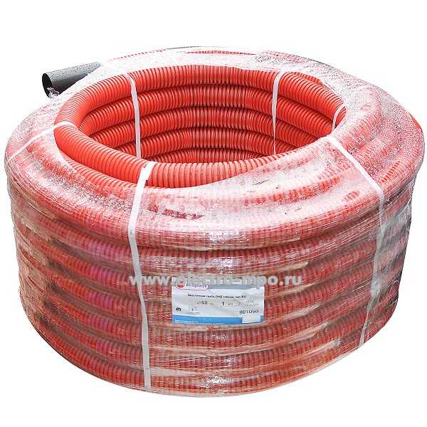Труба 801075 двустенная красная ПНД Dвнешний 75мм Dвнутренний 62,5мм с зондом (Экопласт)