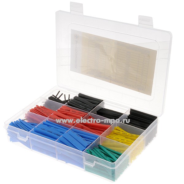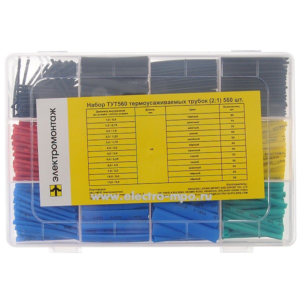 Т3507. Набор ТУТ560 цветных термоусаживаемых трубок (2:1) 560шт (Электромонтаж)