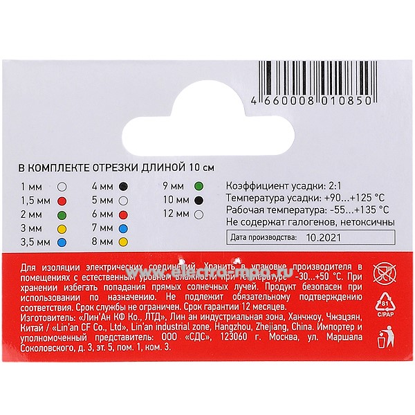 Набор 29-0103 цветных термоусаживаемых трубок "MULTICOLOR 2:1" (Rexant)