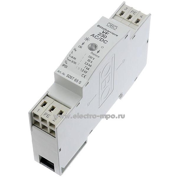 А8696. Ограничитель перенапряжения VF 230-AC, IL 16A 5097649/5097650 (класс III) 7kA 255В 2P (OBO Bet