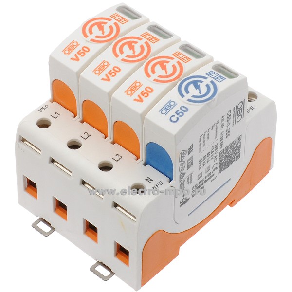 - А8617. Ограничитель перенапряжения 5093526 V50-3+NPE-280 (класс I+II) 50kA 280В (OBO Bettermann)