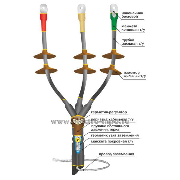 М0350. Муфта 10КНТпН-3х(70-120) конц. термоусаж. 10кВ, бум. и пласт. изоляция, броня (Нева-Транс Комплект)